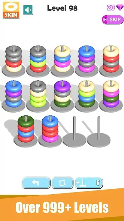 Hoop Sort Puzzle Color Sort是一款令人上瘾的超棒益智游戏!对彩色箍进行排序,直到所有颜色都相同。具有挑战性、令人放松的游戏还可以促进大脑锻炼! 没有烦人的每分钟弹出广告。 在wifi上自由享受。 如何玩: - 点击任何篮筐将篮筐移动到另一个篮筐。 - 您只能将具有相同颜色的箍移动到另一个颜色最上面的箍。 - 尽量不要卡住,您始终可以返回上一次移动并重置 特点: • 没有烦人的强制弹出广告 • 无限返回最后一步 • 快速堆叠箍运动节省时间 • 可爱友好的颜色 • 超过4999个独特的关卡(即将更新) • 仅限一触式游戏 新功能将尽快更新