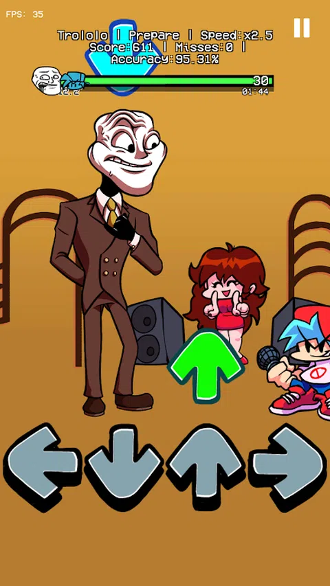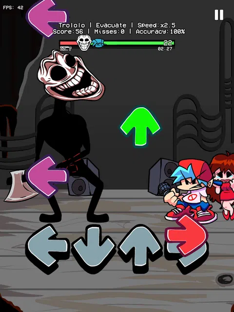 周五晚上终于来了! 探亲的好时机! GF 将 BF 介绍给她的叔叔 Trololo 先生。他们在 FNF 说唱比赛中开始用 funkin 音乐交谈。那是在一起的有趣时光。然而,特洛洛突然被一个神秘人—巨魔控制。然后他开始攻击GF和BF。你应该做些什么来帮助他们? 怎么玩? - 使箭头完美匹配。 - 击败所有敌人(Blue V1、Tricky、Papa、Bob、Tord)! - 享受这个有趣的冒险的真实体验! - 挑战你的手指!名列前茅! 风琴特色 - 箭头随着芬金的旋律落下 - 完整的模组如你所料的完整敌人(GF,自杀鼠标,彩虹朋友.) - 梦幻般的背景和美妙的音效 - 退出游戏时始终保存您的乐趣之旅 - 不需要开始新模式 - 经常更新! 玩得开心! 不要忘记!跟随我们进入一个充满活力的 FNF 粉丝社区