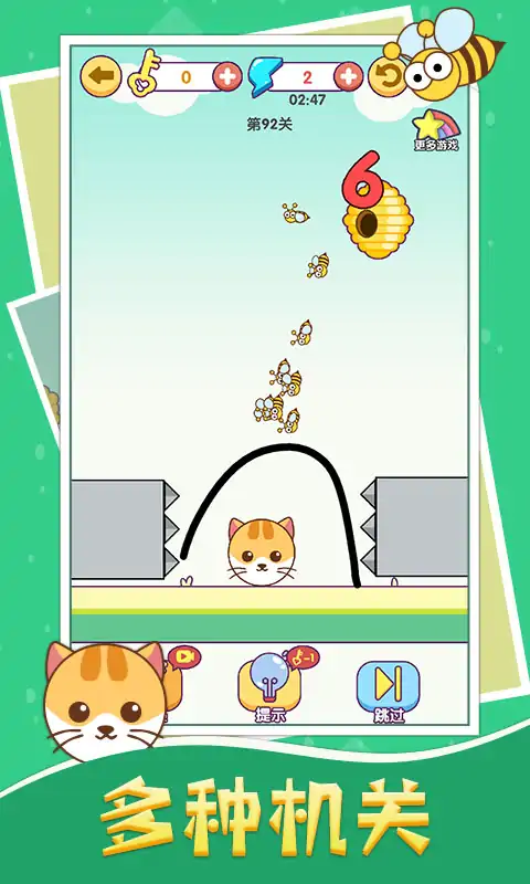 这是一款有趣的画线保护猫猫的物理解谜游戏,游戏中需要玩家画线阻挡蜜蜂的攻击,游戏有众多的关卡和各式各样的机关陷阱,玩家需要利用不同的地形和机关保护猫猫,游戏内容丰富玩法趣味,你能挑战几关呢? 1、操作简单的画线玩法 2、海量的关卡和各式各样的陷阱机关 3、物理解谜玩法生动有趣