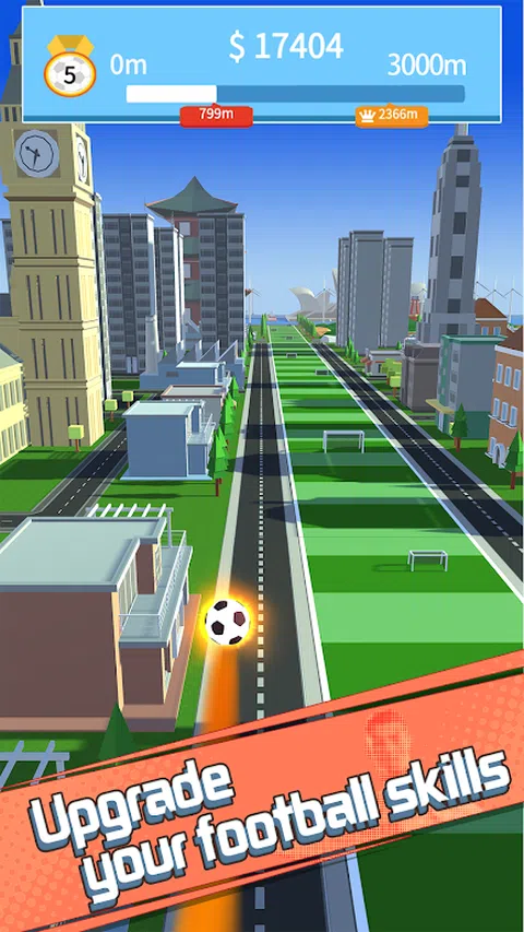你能踢多远的足球? 点击以踢足球,滑动以抵消足球。尽可能踢得远。你踢得越远,你赚到的硬币就越多。使用您赚到的钱来提高您的力量和足球的弹跳力,让足球飞遍世界各地。 生动的视觉效果和令人上瘾的游戏玩法,将带您踏上想象中的足球之旅。锻炼手、眼和大脑的协调能力。享受足球狂热