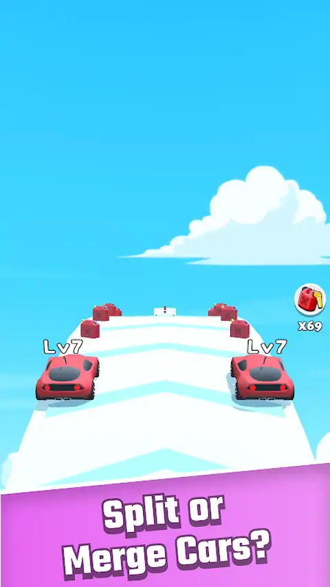 合并或拆分您的汽车以避开障碍物并跑得更远!它超级容易控制,但需要你的一些注意力,这会让你进入心流状态,帮助你释放压力,忘记烦恼。 只需点击屏幕即可合并或拆分您的汽车,以避开障碍物或合并路上的其他新车进行升级。您将体验到您的汽车等级不断升级并获得令人惊叹的新外观的成长之旅。您的汽车等级越高,您通过游戏时到达的距离就越远。听起来超级有趣,对吧?不要犹豫,现在就玩吧