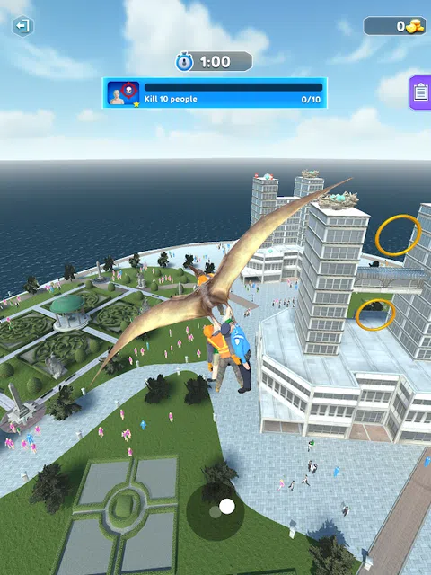 在 Ptero Hunt 中,扮演翼龙并恐吓城市!飞来飞去并完成所有目标,以解锁要控制的新城镇和恐龙