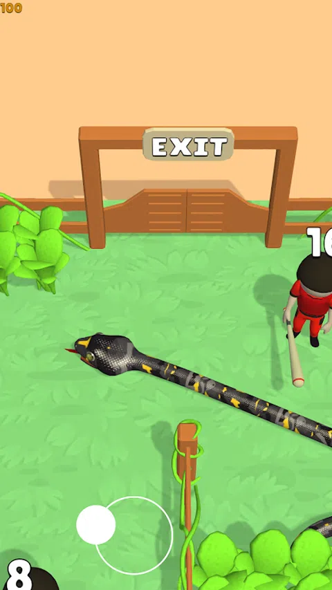 在这个游戏中,您将使用操纵杆控制鬼鬼祟祟的蛇。您的目标是找到通往房间各层出口的路,以获取鸡肉作为晚餐。在你的路上,你会发现敌人的火柴人会试图阻止你,但你可以从灌木丛中偷偷摸摸地攻击他们。 偷偷摸摸地成为致命的蛇并抓住小鸡
