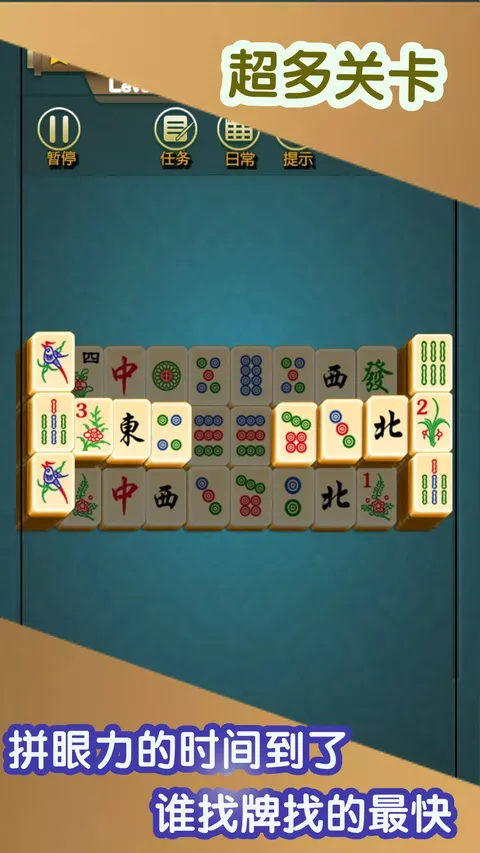 经典玩法,再现江湖! 游戏操作方法: 两只花色相同的麻将点击消除,直至全部消掉或者没有可消。只可以点选左边或者右边没有其他麻将牌挡住的麻将牌,此外被其他麻将牌堆叠着、覆盖住或者压住的麻将牌也不可以点选。 轻松点击,爽快消除,劲爆特效,畅玩四季