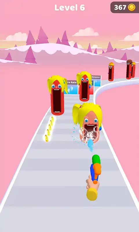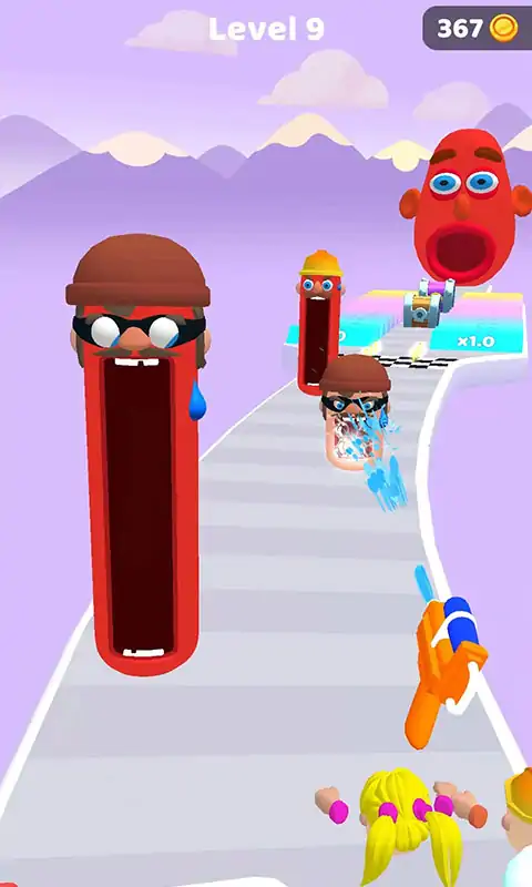 街机赛跑游戏,您必须用水枪喝醉有趣的头。最后,您的头将与对手的头战斗,因此您应该召集大党以获胜。 通过各种门,可以增加或减少水枪的参数。每个头都有三个进化阶段 - 首先是手,然后是武器。