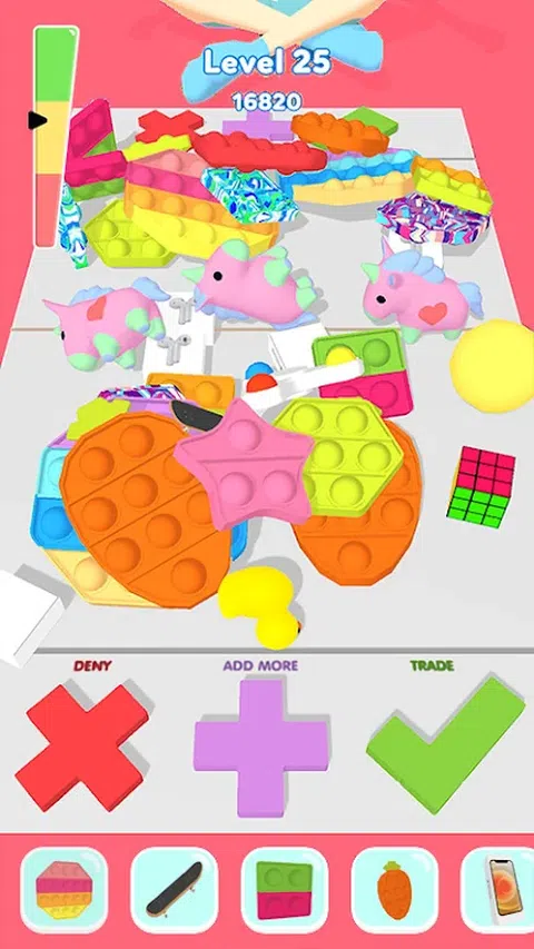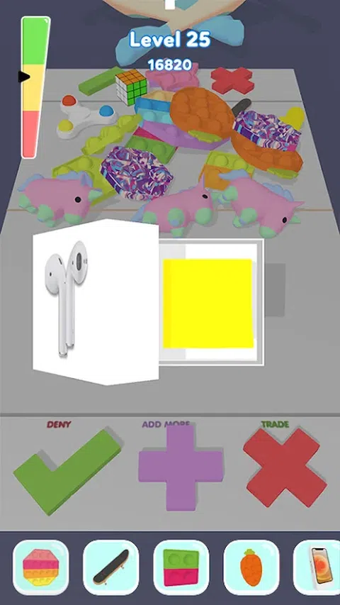 交易独特的坐立不安,掌握阅读对手的心理,发展交易技巧,使用臭名昭著的骗局策略或以荣誉交易!这完全取决于你的游戏风格。 怎么玩: 按十字按钮拒绝交易。 按加号按钮要求更多玩具
