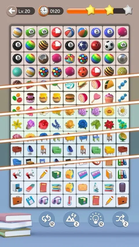 #1 令人上瘾和具有挑战性的配对连接益智游戏。您需要连接匹配的瓷砖并将它们全部弹出! 立即开始玩 Onet Connect - 一款深受全球数百万玩家喜爱的传奇连接益智游戏!搜索有趣的图像组合,找到匹配的一对,并用最多三行连接它们。当你清除一个级别,你会发现新类型的瓷砖连接