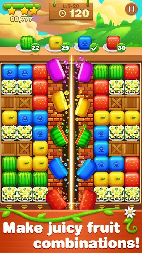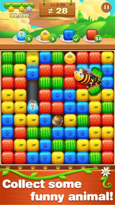 水果爆炸被孩子和大人们所喜爱。它将思维挑战与休闲益智游戏相结合。以美味的甜点和多汁的水果为主题风格。在点击水果的同时,还可以养一只宠物陪伴你度过难关。水果爆炸是你分享在朋友圈子中最好的益智游戏!水果爆炸总计有250个关卡。上手简单,只需点击两个或更多的相同水果。你的目标是尽可能地去消除更多水果。收集道具来帮助清理障碍物。快跟大家一起冒险,最棒,最令人难以置信的水果游戏将满足你的甜食喜好!水果爆炸期待你的参与!水果爆炸特点:- 总计250个充满了丰富水果的关卡- 穿越5个精彩的地图- 有趣和相当具有挑战性的障碍- 难以掌握,充满挑战,练习你的玩法技巧- 全新的水果视觉效果设计立即免费下载!在水果爆炸享受轻松愉悦。你会沉浸于美妙的水果天堂