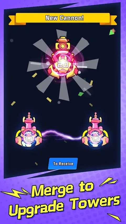 认识一个关于合并和塔防的免费空闲游戏!攻击、合并和保卫你的塔! 空闲大炮 是一款最轻松的射击闲置堡垒游戏,您可以在其中合并同一级别的大炮,升级您的塔楼以打破砖块,并消灭来自外太空的无尽入侵。他们说好的战略赢得战争。随着外星人入侵的浪潮向您袭来,现在是时候合并并增强您的武器了!通过炮塔融合加强防御,所有升级后的大炮将自动攻击无限砖块,威力更强更猛。和 空闲大炮 ,您将踏上令人上瘾的合并和塔防之旅。合并大炮、融合炮塔和升级堡垒以打破砖块并击败无数外星人入侵。 如何玩空闲大炮? 在指定区域放置大炮。通过合并两个相同级别的大炮/炮塔/堡垒来升级你的塔防。 升级后的大炮/炮塔/堡垒会自动射击下降的砖块,而那些闲置的大炮将为您完成所有的塔防工作。 升级以增加合并塔的火力和射速以粉碎更多砖块。 特征 : 合并 : 空闲大炮 是一款合并和塔防游戏,这意味着用户必须合并两个相同级别的堡垒来加强武器和加强防御。只有这样,合并的炮塔才能打破倾泻而出的砖头大军。 闲置的 :完成合并和升级炮塔后,一切就绪。那些合并的堡垒将负责其余的塔防工作,并自动射击破砖。当你的大炮击落下降的敌人并打破砖块时,你可以赚取金币。即使您处于离线状态,您的收入也会继续增长。 塔防 打破砖块 : 空闲大炮 提供各种砖块供您击落。破坏带数字的砖块可以赚取金币,消除带闪电的砖块会产生连锁效果,用冰霜击落砖块会冻结整个描述结束砖。 空闲大炮 空闲大炮 免费!部署你的炮塔,让他们击落太空入侵者并打破无尽的外星砖块