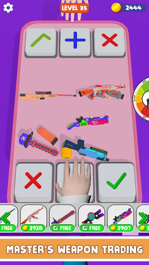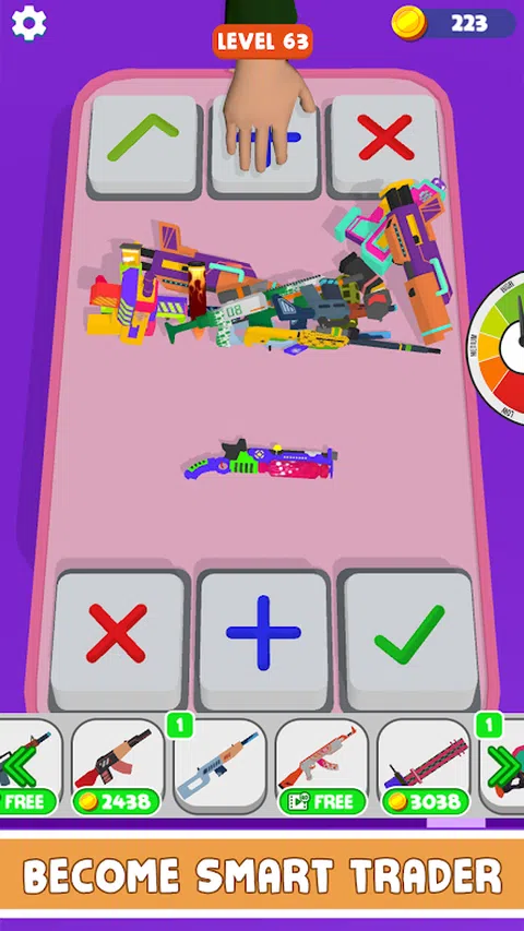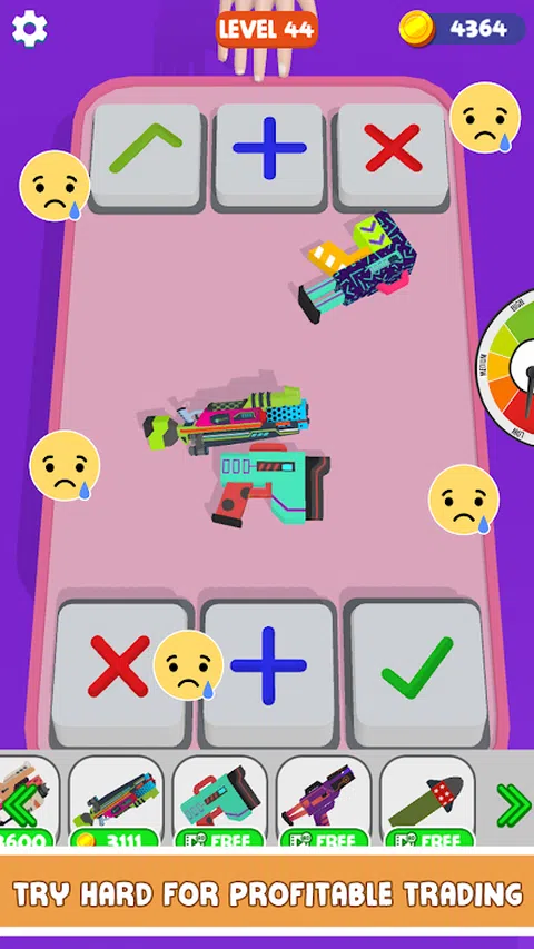 当您想成为一个放松、改变或只是片刻娱乐的人时,请免费享受这款 Fidget 武器交易游戏,现在就成为交易大师。 开始交易烦躁的武器,以完美消除心中的焦虑。我们知道 Fidget Weapon Trading: Pop It Games 将成为最受欢迎的休闲游戏,拥有许多五颜六色的武器。 与你的对手交易,从他们那里收集最多的武器,并表明你是世界上最好的指尖交易者。向上滑动以将武器扔到桌子上并检查对手的报价。交易表将向您显示桌上交易的价值。如果你发现这笔交易有利可图,那就去做吧,否则你可以要求更多的武器或取消交易。成为最受欢迎的指尖武器销售人员以收集最多。 如果您是男孩或女孩,您可以学习计算并获得 Fidget 交易知识。发现一个好的策略或阅读对手的心理。顺其自然,点击交易,要求更多,或取消交易。控制数百种烦躁的武器并通过玩烦躁的游戏来放松。 准备好从对手手中夺走所有烦躁的武器了吗?成为武器交易大师