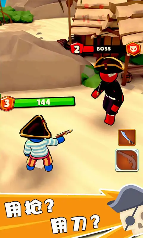 探索加勒比海神秘岛屿,突袭敌方基地,在大型战斗中击败敌方首领。你需要巧妙使用你的武器(手枪、近战、剑、枪等)并在它们之间切换,向他们展示你在战争战略和战术方面的能力。 解锁岛屿,寻找荣耀和宝藏,增强武器和力量。 特点 - 随时随地玩 - 渐进式游戏,有很多关卡可供解锁 - 升级角色、武器和海盗船