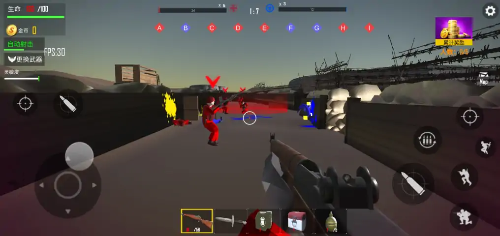 《D-DAY诺曼底登陆战》是一款轻松、解压、好玩、易上手的射击游戏。真实还原二战经典诺曼底登陆战以及种类丰富的二战经典武器枪械。 玩家可选进攻方,通过抢滩登陆,突破防线击败对手来获得胜利;也可选择防守方,击败对手,阻止对方进攻。游戏的目标是击败的您的对手, 在积分上超过对方特定的分数即可获得胜利,积分可以通过击败对手获得。