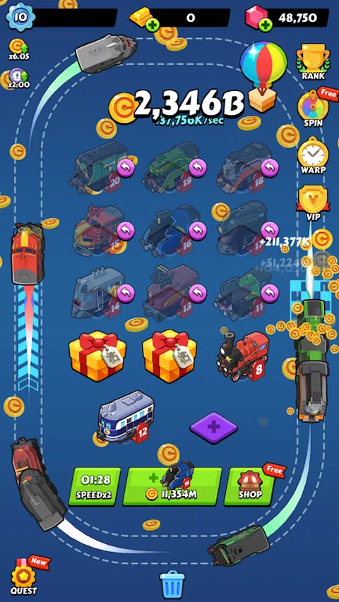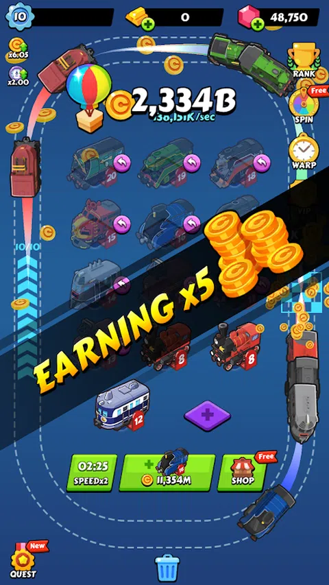 让我们合并火车。合并火车:空闲大亨 你能拥有多少辆火车? 合并培训和管理! 合并和管理您自己的车库和铁路中的火车。 每次合并火车时,您都可以获得新火车。 收集各种火车! 今天开始你自己的铁路世界! 游戏特色 - 通过合并和培训服务赚钱。 - 各种火车。游戏中有超过 30 辆火车。还有一些稀有的火车在等着你。 - 空闲系统。火车将自动。即使您处于离线状态,您也可以赚钱。 - 免费大亨游戏 怎么玩 - 在车库中合并同一级别的火车。 - 通过在轨道上注册火车来赚钱。 - 使用旋转和广告气球获得免费福利