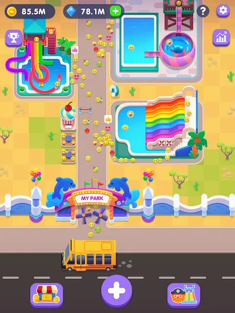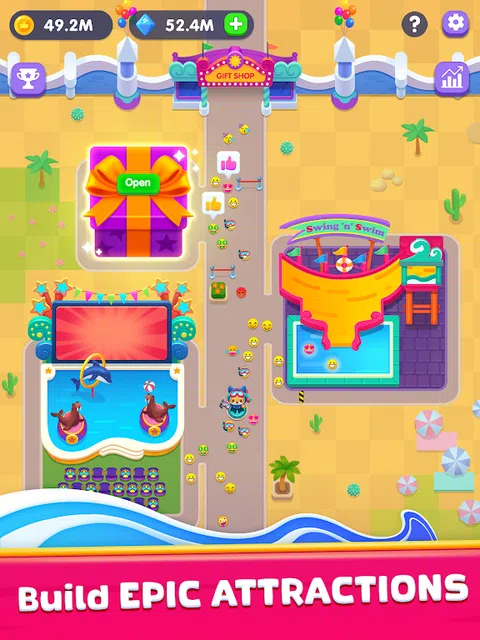 我们邀请您参加“Aquapark Tycoon”游戏中有史以来最好的湿地冒险!成吨的水和飞溅,笑声和尖叫声正等着你。乘坐令人惊叹的水上过山车,成为游乐园的一部分。 如何玩: 控制客人的情绪。照顾客人并尝试管理他们的情绪,不要让他们感到生气、寒冷或饥饿! 建造水上景点。选择任何类型的水上滑梯并开始构建它。 考虑公园的基础设施。您将为客人提供什么类型的餐厅、吉祥物和配饰。 升级基础设施和水滑梯。使您的公园成为最大、最有趣的公园。 我们的客人可以享受哪些类型的水上娱乐活动: - 经典的螺旋滑梯 - 适合多个斜坡。非常适合在其他游乐设施之前热身,游客可以习惯速度和下降。 - 滑动漏斗适合最多 4 人的团队。经过几次艰难的滚动后,放松身心。 - 成排的水滑梯 - 寻找新朋友或保持友好情绪的娱乐活动。最多可以与 7 个角色的团队一起滑下。平静的娱乐,您知道会发生什么! - 带木筏的水滑梯是另一种娱乐方式。您可以选择满足任何要求:乘浪或沿河,还有动态秋千。 - 对于极限爱好者,我们提供:冲浪或喷气滑雪。开始极限水上运动世界之旅或升级技能! 特点: - 简单易玩的游戏,适合具有不同技能的玩家; - 炫酷挑战的大量奖励; - 丰富多彩的图形和动画,让您沉浸在氛围中; - 提升玩家的商业技能; - 可以保存您的进度! 从一个小型水上公园开始,然后升级和扩大领土。为不同类型的景点的客人开辟新的水上娱乐活动。从众多咖啡馆、带有吉祥物配件的商店和其他娱乐项目中进行选择。统治您的主题水上乐园,成为最富有的大亨!请记住,不允许 51 英寸以下的儿童玩成人滑梯
