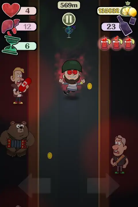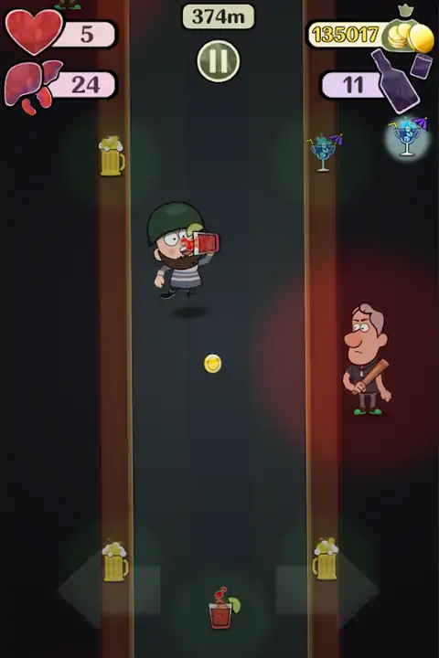 有趣、疯狂、上瘾的跑步者,带着饮料、危险的酒吧招待和熊。尽可能多地跑步,喝各种饮料,避免愤怒的酒吧招待,进行冲刺并创造记录