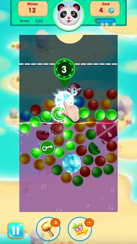 泡泡连接是具有特殊游戏玩法的魔术三消游戏。气泡在水中连接比赛 3 游戏非常有趣。 游戏有水物理效果,我们会在水下爆泡泡。 帮助熊猫宝宝收集珠宝美女并制作魔法效果。 如何玩泡泡连接游戏: - 连接、匹配和爆破 3 个相同颜色的气泡来弹出它并打破砖块。 - 连接、匹配和爆破 4,5 个和更多相同颜色的气泡,以泡泡、风扇、水瓶 - _connect 泡泡有与泡泡相同颜色的钥匙来打破锁定。 - 用风扇连接 2 个气泡以弹出所有相同颜色的气泡 - 将气泡与水瓶连接以爆破并提高水位 - 爆炸泡泡炸弹在它附近弹出泡泡 - 收集珠宝帮助熊猫宝宝并在游戏中获胜 - 弹出和爆炸气泡以通过难题级别困难 特征 - 100 多个具有独特挑战性障碍的关卡 - 具有物理效果的魔法水 - 使用智能连接制造更多能量泡泡 - 匹配3个泡泡力量,使魔法效果和美丽 放手玩熊猫泡泡连接游戏,玩得开心