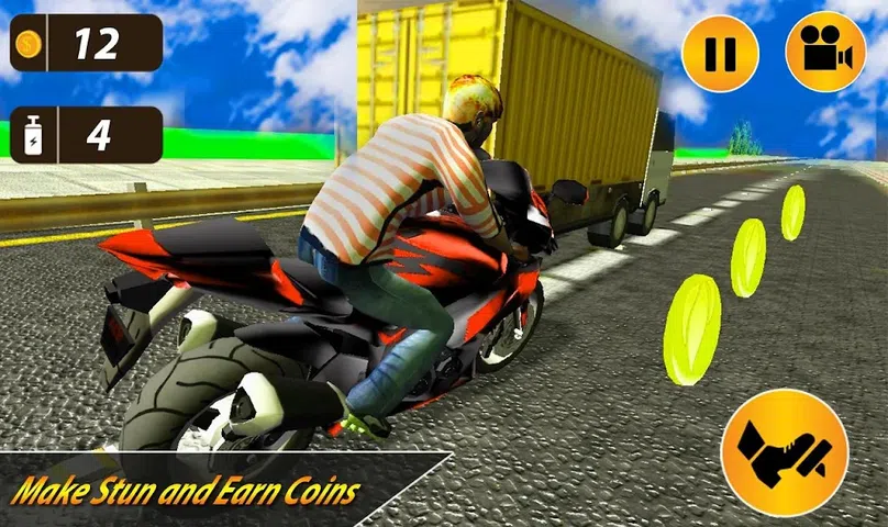 Mega Bike Stunt Rider : 3D Superstar 是一款快节奏的赛车游戏。你永远不敢在现实世界中开这么快!控制您的超级自行车特技骑手:在交通高峰期以惊人的速度控制您的 3D 超级巨星!在旅途中还可以欣赏美丽的景色—沙漠、城市、桥梁、大海和森林! Mega Bike Stunt Rider : 3D Superstar 通过添加完整的职业模式、第一人称视角、更好的图形和现实生活中录制的自行车声音,将无尽的赛车类型提升到一个全新的水平。流畅的街机赛车的精髓仍然存在,但在下一代的外壳中。在无尽的高速公路上骑自行车,超越交通,升级并购买新自行车,以在职业模式中完成任务。 直观的游戏规则: - 倾斜手机控制自行车方向 - 点击加速按钮加速 - 点击刹车按钮减速 赢得高分的技巧: - 继续加速摩托,以便提高分数。升压系数显示在屏幕的右上方。 - 注意指示灯。车辆可以左转或右转