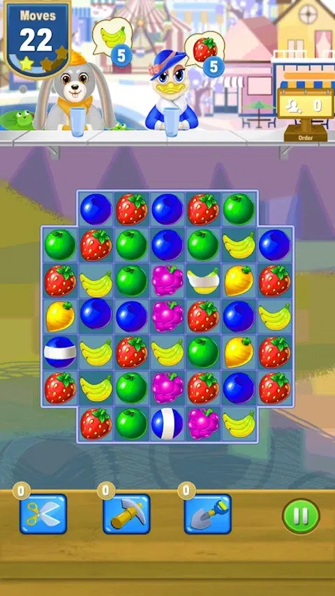 鲜榨果汁 顾客给你点果汁。在尽可能多的镜头中装满他们的眼镜,以获得最高分并名列前茅! 跟随您的朋友和家人的发展,与社交网络联系和分享。 游戏特色: - 数百个级别 - 巨额奖金 - 令人惊叹的世界 - 美丽的图形 - 用水果击败老板 - 将水果组合成 3,尤其是 4 或 5,以获得魔法射击。 - 越来越难的关卡 怎么玩: - 对齐相同的水果来制作果汁。 - 将它们对齐 3,尤其是对齐 4 或 5,以获得更多积分并进行魔术射击。 - 装满顾客的所有眼镜。 - 用水果放下老板。 - 分享以赢取硬币。 - 观看视频也可以赚取金币。 让大家放松一下。并且毫不犹豫地放最多星星来鼓励我们