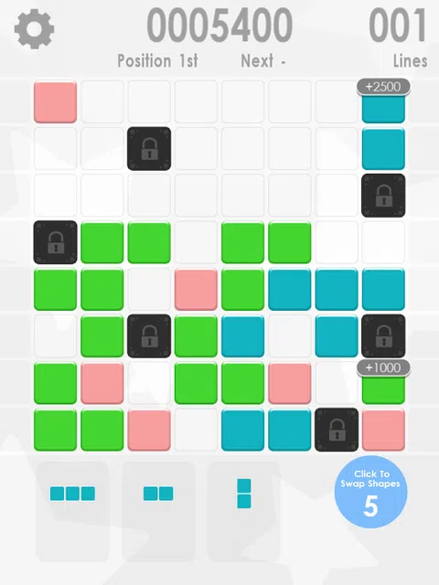 非常简单的上瘾益智游戏,只需拿起和玩,可以享受 30 秒到 30 分钟。 如果您喜欢简单的休闲益智游戏,那么这是给您的。 注意出现在网格中的奖金,这些将有助于提高您的分数或锁定一个区块。要删除锁定的块,您必须在其上创建一条线。 如果形状不适合网格,请尝试使用通道来获得更多形状
