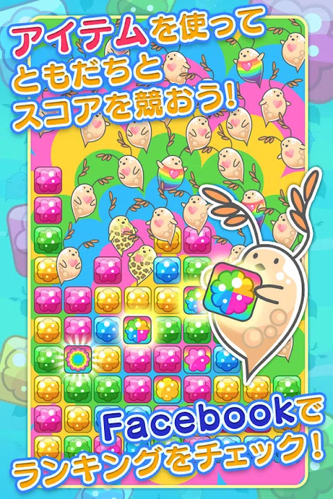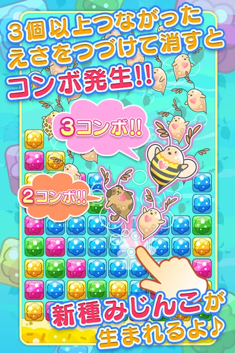 这是一种新型的益智游戏,可以制作很多可爱的Mijinkos! 点击积木喂 Mijinkos 以生产更多! ■玩法 规则很简单。 快速点击至少 3 个对齐的相同颜色的块。 你擦得越多,你得到的 Mijinkos 就越多。 增加你的 Mijinkos 并瞄准高分! ■一次擦除尽可能多的块 当您一次擦除多个块时,您可以生产稀有的 Mijinkos! ■制作组合 ■获得高分 您的分数取决于您获得的 Mijinko 的数量和种类。 制作大量稀有的Mijinkos以获得高分! ■使用物品 通过擦除许多块,您可以获得物品。 在正确的时间使用它们以获得高分! ■和你的Facebook好友一起玩! 与您的 Facebook 好友一起玩,享受更多乐趣! - Mijinko-chan现在在Twitter上!跟着我