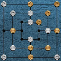 九人莫里斯比赛的 2 名球员变化。在我的版本中,平局的机会更少,获胜的机会更多。在您玩游戏时会显示有关如何玩的说明