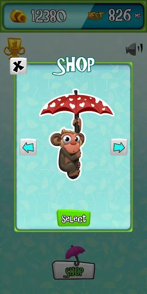 一把雨伞和一只猴子,你能活多久? 穿过墙壁,不要撞到地雷。 收集硬币并购买新雨伞。 追踪最长距离,成为每日和全球排名中的佼佼者