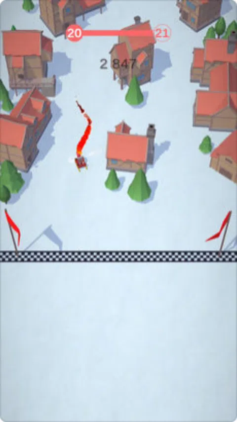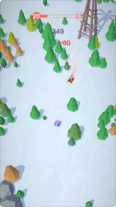 圣诞老人带着他的雪橇在山谷里兜风。 帮助他在树林间滑雪并收集礼物