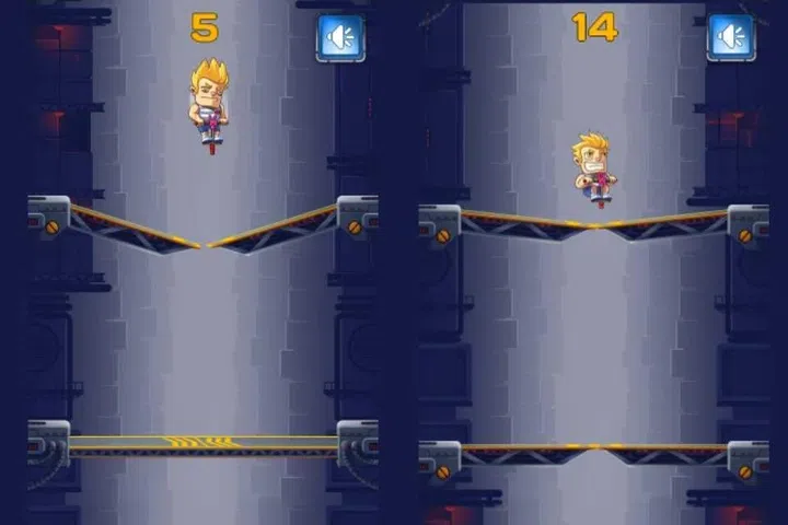 在这个有趣的跳跃游戏中,你的计时技巧有多好? 使用你的弹簧棒,现在跳到自由。 安卓手机上的在线游戏。 好好享受