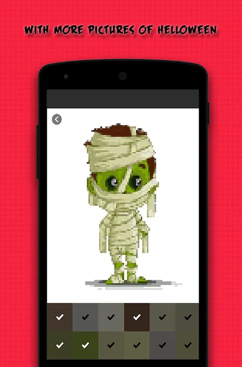 这是一个像素服装万圣节艺术游戏,这个简单的游戏是为了让你可以帮助并增加你的快乐。也可以由您的孩子玩。这个游戏是为了减少你工作和活动后的压力或疲劳。 游戏说明: * 用可用沙箱中可用的数字着色 * 根据图中数字选择颜色 *完成游戏然后保存,您可以与您的亲密朋友分享 这是教孩子和认识的人的另一种方式。他们可以帮助创造力着色和发展他们的想象力。 关于这个游戏: - 可以轻松上色 - 让你玩这个游戏 - 免费只为你 还等什么,赶紧下载吧