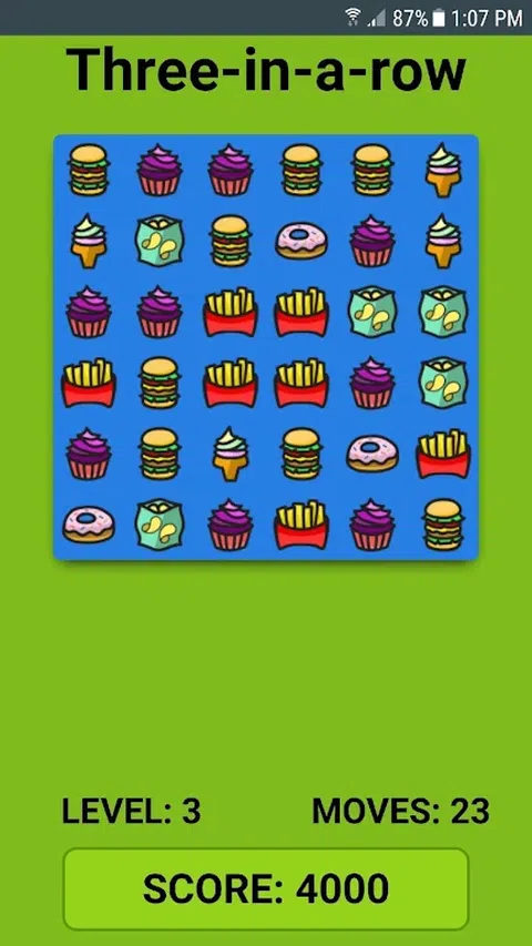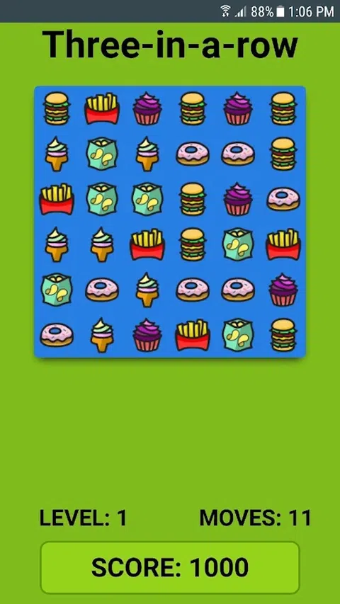 向左或向右、向上或向下移动以匹配 3 个相同的项目。 匹配4个或更多以获得更多积分。 您在游戏结束时获得 10 步,并随着您不断得分而获得更多奖励