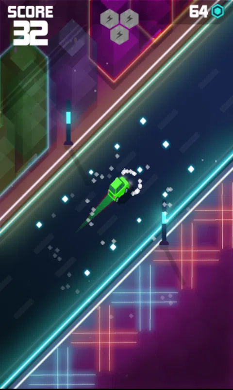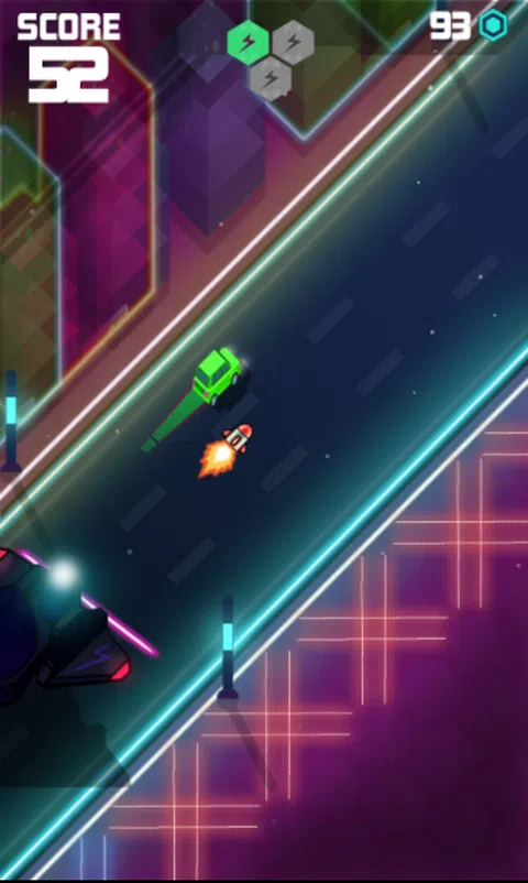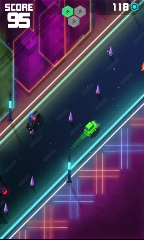 在 Tron 风格的霓虹高速公路上开车,避开尖刺、警察、导弹,并收集球体以在商店购买新车,收集特殊能力以摧毁敌人并一路生存到霓虹世界以最好的成绩击败所有分数音乐,成为节拍幸存者