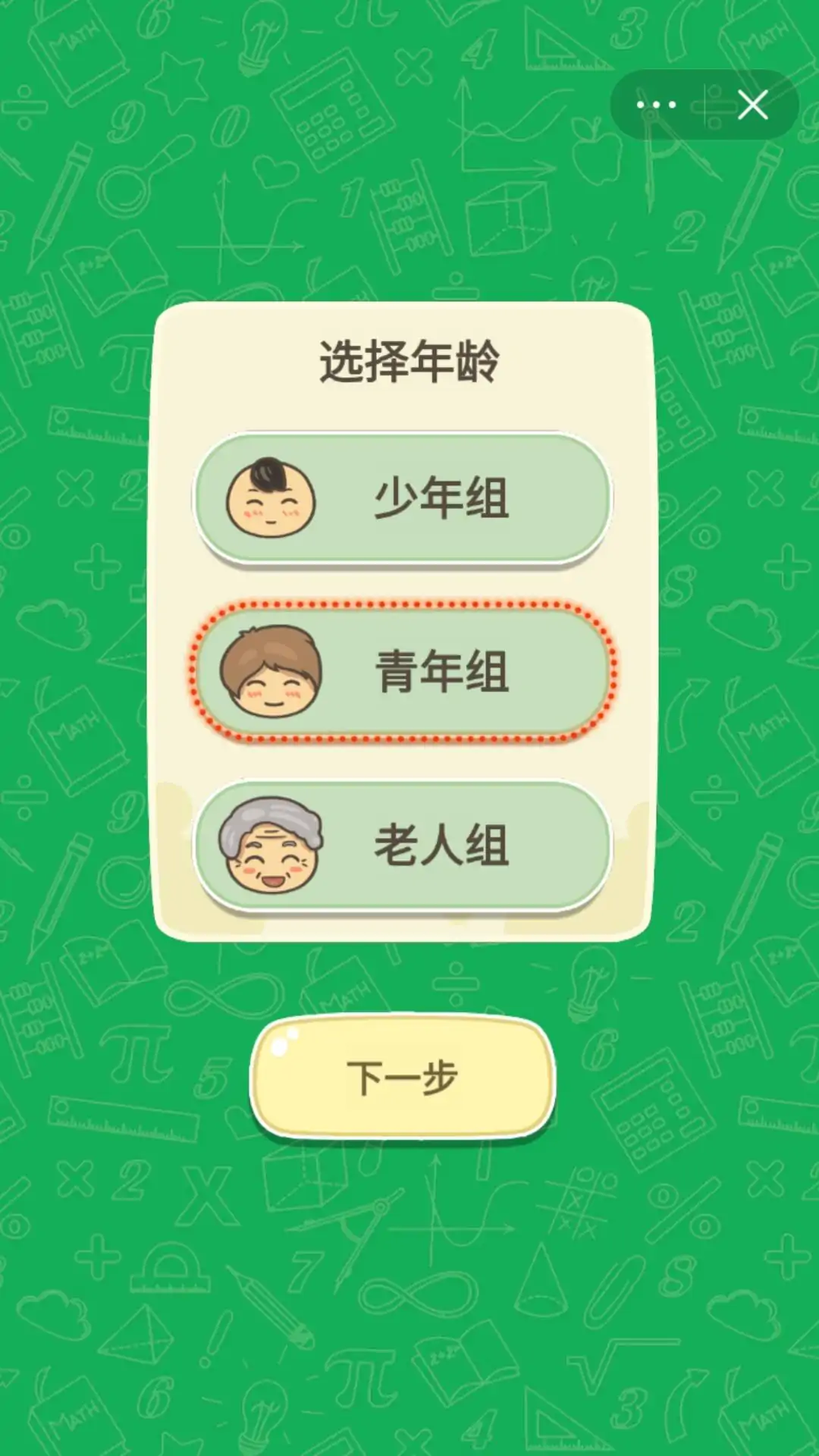 少年组 青年组 老年组 你能在哪个组立足,来挑战一下吧