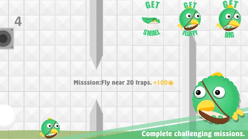 你的毛茸茸的小鸟拥有一些特殊的能力。它们可以像普通鸟类一样拍打,也可以给自己的身体充气和放气,这样它们就可以避开尖刺和其他陷阱等障碍物。它们基本上是充气的。让 flappy 飞过关卡并瞄准最高分! 控制: • 点击关卡上的任意位置以拍打并走得更高。 • 触摸充气/放气按钮,让您的充气鸟缩小或增长。 提示: • 当你收缩太多时,你的飞扬就无法飞翔。 • 当你的小鸟长到最大时,它会飞得更高。 • 不要触摸尖刺或其他陷阱