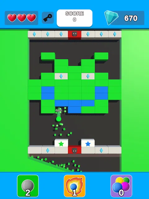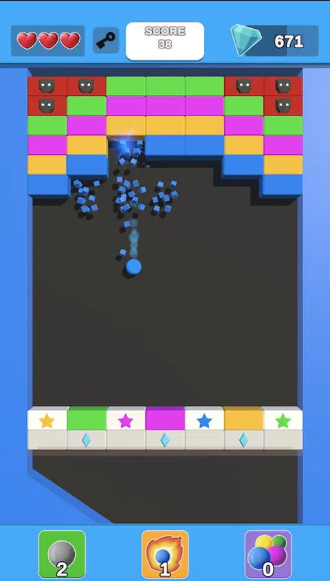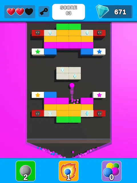 引导弹跳球匹配并炸开彩色砖块,并在这个砖块破坏冒险中通过数百个级别