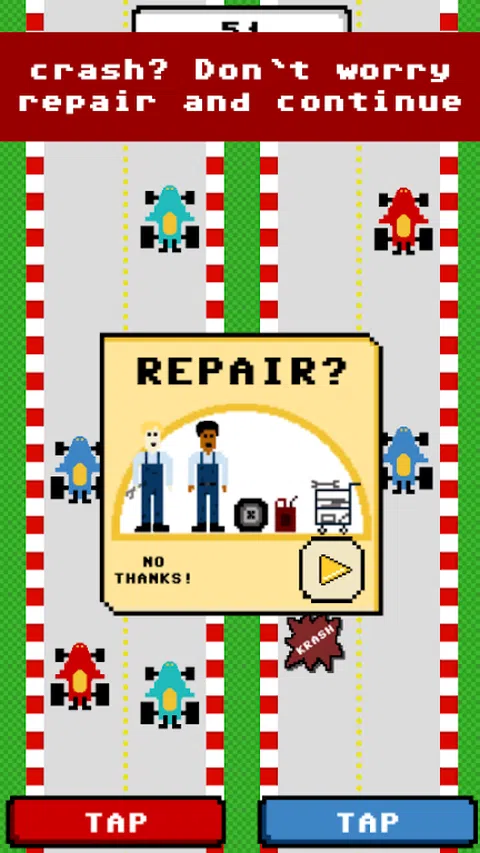驱动器,并没有崩溃是一种上瘾的2D游戏,你的挑战是要驾驶两辆汽车在一个比赛! 你有没有分裂的大脑独立工作的能力吗?让我们来挑战你与驱动器,没有崩溃! 没有其他的选择,你应该一分为二的大脑,用你的两只手同时控制汽车。在超越你越做,更多的积分,您可获得。 集中!加快汽车快和多,你必须专注于自己的两辆车。证明你是一个赛车手的勇气,一个车手谁可以同时控制两个汽车。 此外,您还可以恢复,如果在路上不幸坠毁。 现在赛车!挑战你的朋友和其他玩家在硬盘驱动器并没有崩溃