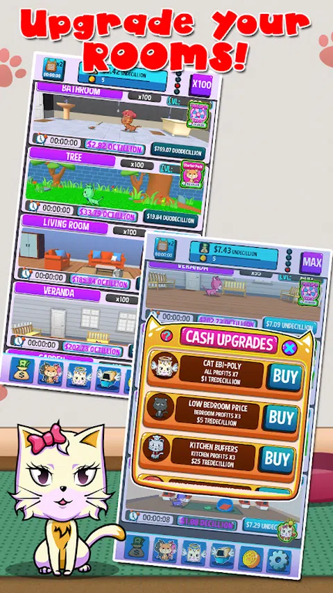 Cats Rule the World 是一款免费的闲置游戏,在这款游戏中,猫就像人类一样。他们在小巷里走来走去,在厨房做饭,睡觉并收集闲置现金。 就像人类一样,猫需要成长并能够在没有犬类敌人 DOGS 的情况下统治世界。不允许不守规矩的犬类,记得是猫统治世界吗?养的猫越多,收集的猫就越多,neko atsume,你就能收集到更多的闲置现金。 由猫管理员或猫保姆自动化您的工作流程,这样一切都会自动继续。 特征: 管理自己的房间并自动化实验室的工作流程并获得更多闲置现金 您的房间将继续运行,即使您在游戏中处于离线状态 聘请猫咪保姆进行操作 用你的黄金来改进并以更高的价格出售它们!更多闲置利润,耶! 经常打开游戏并获得免费金币 管理多达 10 个房间并发挥您闲置的大脑 可进行应用内购买 准备成为小猫收藏家!让那些手指在这个闲置游戏中工作