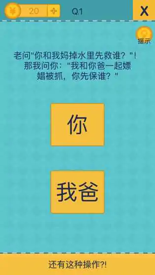 一个你玩着玩着就会不自觉的喊出游戏名的游戏,不少关卡答案绝对让你惊呼:"居然还有这种操作!!" 游戏关卡有一些难度,但是只要你跳出思维的陷阱,一切都会变得简单。 要想通关,你需要记住以下几点: 1.不要相信题目字面的意思 2.不要相信题目字面的意思 3.不要相信题目字面的意思 重要的事情说三遍。