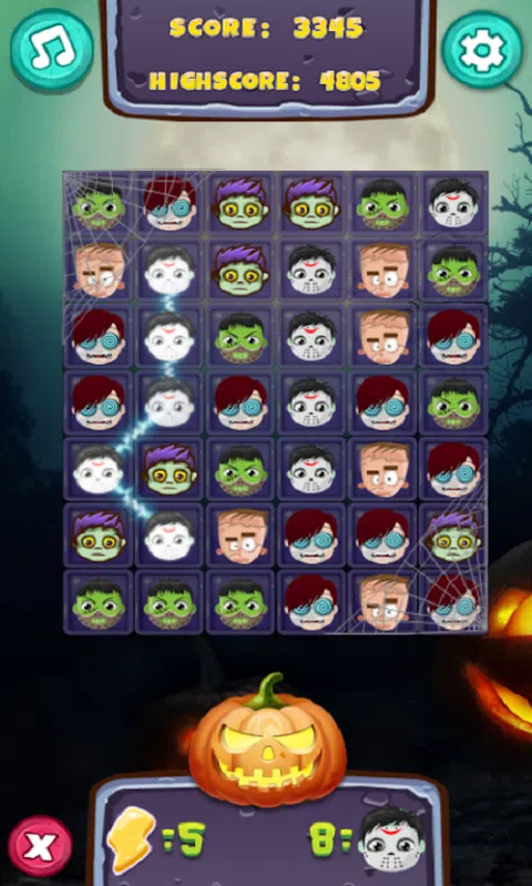 万圣节 - 第 3 场比赛是一款第 3 场益智游戏。选择并连接匹配的 3 个或更多万圣节主题拼贴,将它们从棋盘上取下。您将获得有限的移动和目标。目标是移除最少数量的特定图块。在达到下一级别所需的移动量下达到此目标。 有30个级别