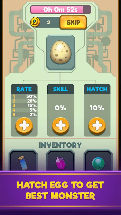 狩猎,收集你的怪物,玩怪物棋,技能,鸡蛋,PVP,战术,在你的家乡旅行,鸡蛋猎人会为你带来一切。制作你的办公桌,然后在大量的战斗板上绘制你的动作,与其他玩家进行 PVP 战斗。 怪物+战术相结合: 孵化你的蛋来获得怪物。 收集怪物 建立你的套牌,然后在战场上与对手战斗。 结合怪物与他们的技能。 研究每场战斗的新战术。 PVP 和单人战役模式: 进入竞技场与其他玩家战斗,回合制战斗 在单人战役中探索村庄。 孵化和制作你的蛋以获得最好的怪物 赢得多场战斗,登上排行榜榜首 免费金币、每日奖励和幸运轮