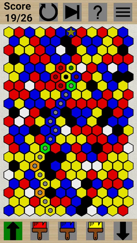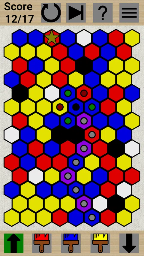 描述: Path paint 是一款益智游戏,您可以在其中尝试找到从头到尾的最短路径。您是否可以从一个点移动到下一个点取决于颜色关系。例如,如果您当前在一个红色六边形上,而另一个红色六边形与您相邻,那么您可以移动到那里。如果相邻的六边形是通过将红色与其他颜色(例如紫色)混合而产生的颜色,那么您也可以移动到那里。 如果相邻的六边形是蓝色的,你不能从红色移动到那里,但你可以将蓝色六边形中的颜料与红色颜料混合,这会产生紫色,让你可以移动到那里。您可以使用三种颜色来绘画:红色、蓝色和黄色,总共有 9 种颜色。红/蓝/黄是底色,橙/紫/绿/棕是底色混合而成,有可以涂任何颜色的白色六边形,也有不能涂的黑色六边形。 你做的每一步,无论是画一个六边形还是移动到另一个六边形都会花费你一个移动点。您必须使用不超过允许的移动点数到达终点,这是在屏幕左上角指定的。可以在应用程序的“帮助部分”下找到更详细的说明。 特征: - 游戏盘是随机生成的,所以基本上有无限的谜题。 - 可以跳过一个谜题来生成一个新的谜题,或者重置当前的谜题。 - 设置允许您更改游戏板的大小以及难度。 - 可离线播放 - 适用于平板电脑。 - 完全免费,无广告,游戏内购买等