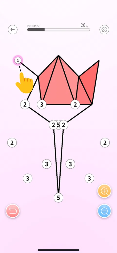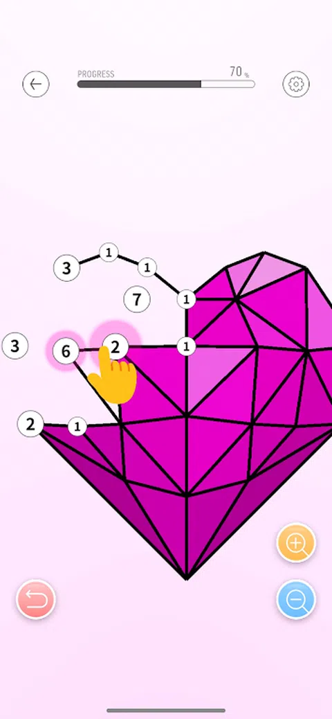 您可以连接点。 从一个点可以绘制的线数由一个数字表示。 如果连接到错误的点,它会变成红色,因此将其擦除并重新开始。 当您通过绘制正确的线来完成三角形时,它将被着色。当所有的点都正确连接后,一张图片就完成了。 总共有 1000 多个问题! 按照自己的节奏享受这款轻松的益智游戏