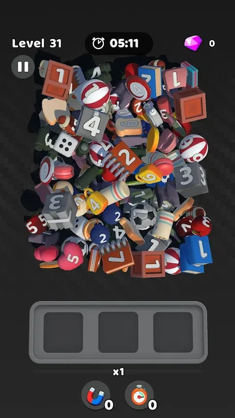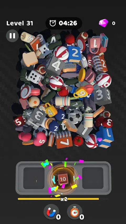 搜索并找到匹配的对象。 将它们合并成 10 个并将它们全部弹出! 找到所有这些,清除面板并获胜