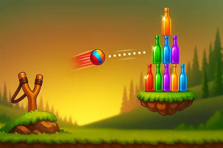 瓶子射击游戏是一款有趣且令人上瘾的弹弓迷你游戏,玩家在其中扮演射手的角色,瞄准并射击各种瓶子。游戏通常具有一系列不同的级别,每个级别都有其独特的挑战和目标。 玩家首先选择射手并装填枪支,然后瞄准一系列瓶子。瓶子可能以不同的形式排列,或者它们可能以不可预测的方式四处移动,使其更难击中它们。 玩家可以为他们击中的每个瓶子得分,也可以通过连续击中多个瓶子或实现某些目标来获得奖励积分。游戏的某些版本可能还包括瓶子翻转挑战,玩家必须翻转瓶子并使其直立降落在表面上。 游戏的其他变体可能包括射击瓶子,玩家必须击落悬挂在绳索上的瓶子,或瓶子游戏,玩家必须击中隐藏在瓶子堆后面的目标。旋转瓶子是另一种流行的变体,玩家必须旋转瓶子,然后在它停止移动之前射击它。 总体而言,瓶子射击游戏是一款快节奏的娱乐迷你游戏,一定会为所有年龄段的玩家提供数小时的乐趣。无论您是想磨练自己的射击技巧,还是只是想发泄一下,这款游戏都是的方式