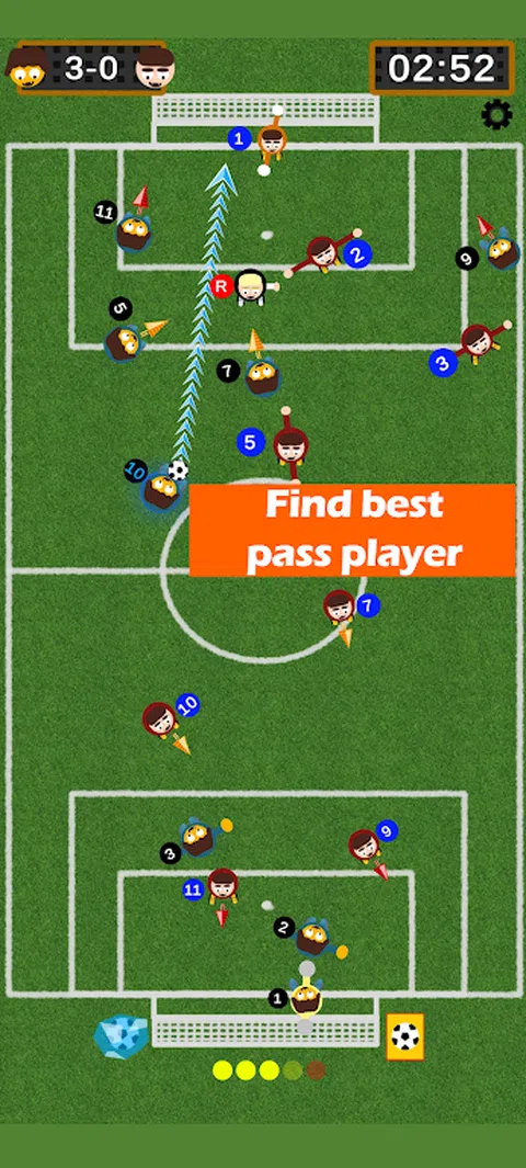 游戏玩法 找到最佳的传球球员来助攻。瞄准击中多个传球玩家以获得更多目标积分。您也可以直接击中球门。冰球可以冻结球场上的任何球员。纸牌球可以摧毁除裁判以外的任何玩家。不要打裁判。击打裁判将导致黄牌。收集足够的比赛得分将提升您到下一个联赛。 特点 1.有 4 个联赛。 2. 每个联赛有 24 个级别。 3. 您需要积分才能升级到下一个联赛。 4. 每场比赛为五分钟。 5. 将球击中每个队友得 1 分。 3 名玩家的目标是 3 分。 6. 总进球数将为赛点。 7. 在关卡屏幕上,您将看到每场比赛的匹配点。 8. 在主页上,您将看到您的总分