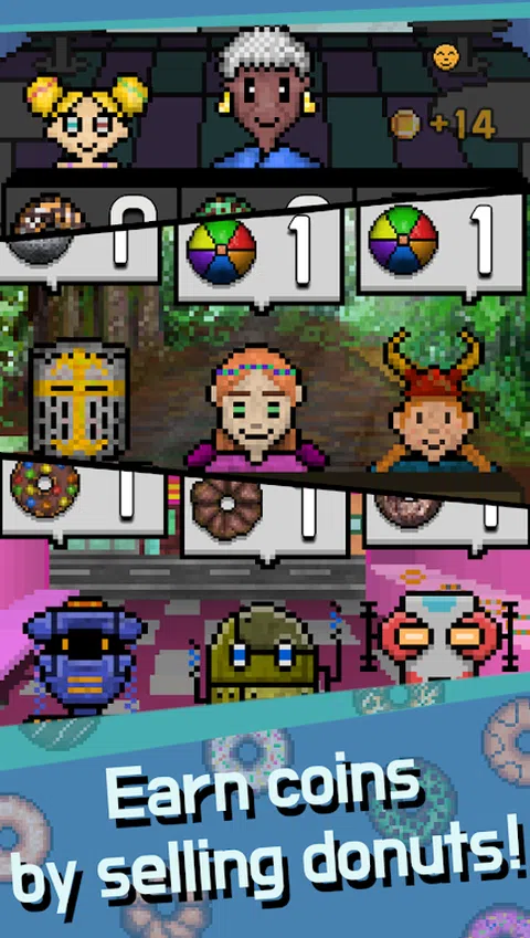 作为一款充满功能手机感性的模拟大亨游戏,您可以制作甜甜圈并将其出售给可爱的顾客。 具有经营类模拟游戏的元素,是一款玩法简单,专注度高的游戏。 满足客户的需求并发展您的商店以创建最好的甜甜圈店! Donut Tycoon 是一款单人养成类游戏。 您的支持将帮助我们开发更多好玩的游戏。 怎么玩 首先,将甜甜圈放入油炸锅中油炸。 如果你炸了甜甜圈,请把它们移到台面上。 在柜台,您可以选择您想要的浇头并完成甜甜圈。 制作足够的甜甜圈后,请前往结账柜台。 如果您可以给顾客他们想要的甜甜圈数量,请在屏幕底部触摸顾客的脸。 您可以提供甜甜圈并从顾客那里获得硬币。 期待已久的顾客离开了商店,失去了他的心。 当所有的心都消失了,商店就会关门。 升级 您可以使用出售甜甜圈获得的硬币来升级制作甜甜圈所需的各种技能。 升级多项能力,更快制作更多甜甜圈! 通过不断升级发现解锁的能力。 如果获得锁定能力,对甜甜圈的制作会有很大的帮助。 游戏皮肤 可以使用各种类型的皮肤。 更换店铺皮肤,享受在各地贩卖甜甜圈的体验。 单独卖甜甜圈会很无聊。 因此,不仅制作和销售甜甜圈,还制作和销售标志、硬币、行星等等。 销售各种东西的经历会给你带来很多乐趣。 并会见各种客人。 利用这个机会欢迎各种各样的客人,从友好的邻居到机器人等等! 迷你游戏 迷你游戏操作简单,由有趣的游戏组成。 控制很简单,但需要高技能才能获得最佳记录! 尝试以最好的记录排名靠前。 您还可以通过迷你游戏获得金币。 推荐给喜欢大亨类游戏的玩家。 在 Donut Tycoon 中让您的梦想成真