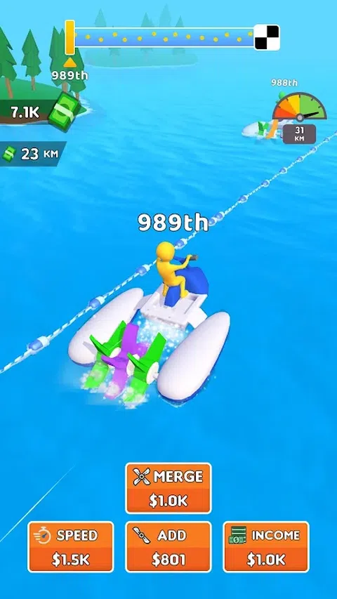 欢迎来到闲置点击游戏 - 水上竞速 ASMR!扮演赛车手的角色,与对手竞争,赢得比赛并赚钱。升级飞船以超越竞争对手。解锁新船。简单的控制方案 - 点击屏幕加快速度。享受令人满意的水轮力学