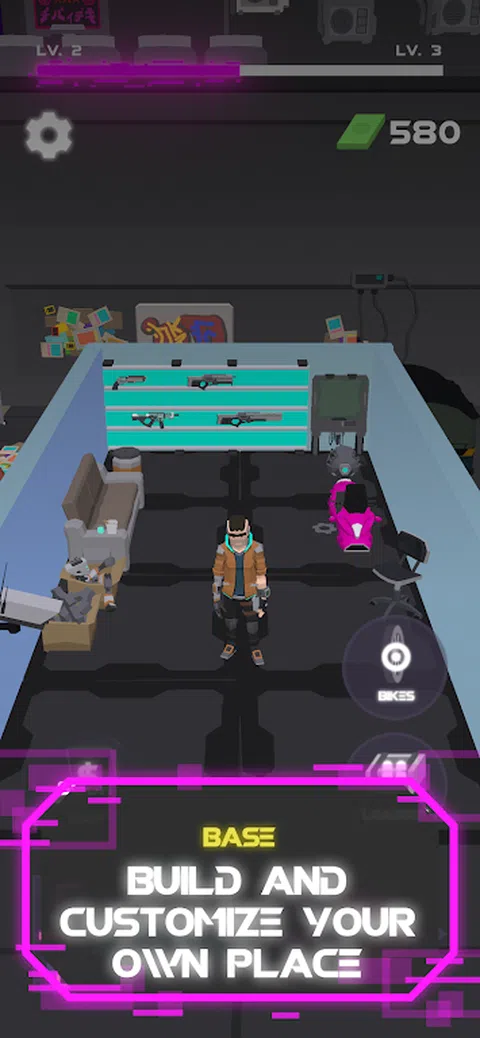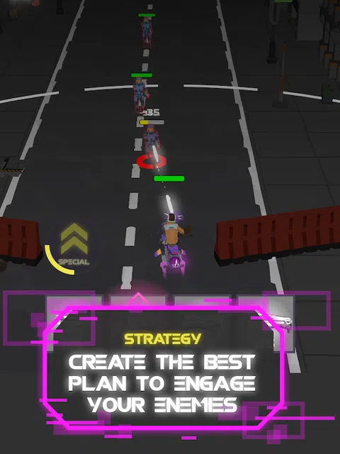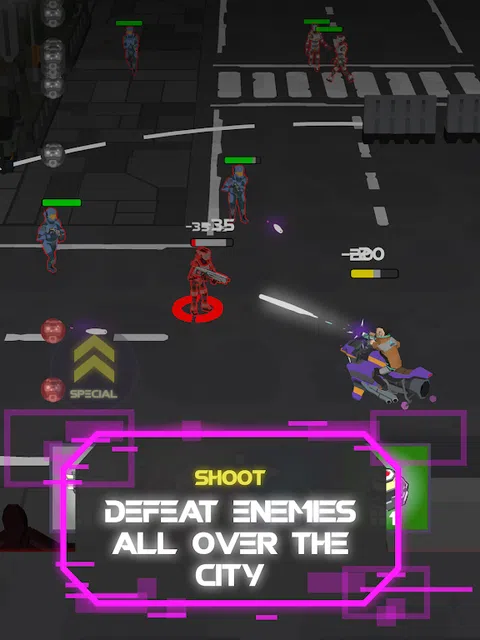 摩托车杀手 - 科幻射击 你是一个反抗的摩托车手,不接受未来主义大城市的军事技术独裁统治。 你需要战斗!因此,站起来反对政权的残暴,用枪支和摩托车与敌人作战! 一辆自行车,一种动力: 在旅途中挑选新自行车并明智地使用它们。每辆摩托车都有不同的动力,可让您造成区域损坏和保护. 大量的武器库: 我们有手榴弹、霰弹枪、冲锋枪、手枪、突击步枪和许多其他类型的武器。每种武器都有其稀有性和属性。将它们全部收集并创建不同的攻击策略。 不同的级别和敌人: 沿途有许多独特的关卡和各种类型的敌人! 自动射击机制: 复杂的游戏控制?不在这里!我们的游戏让您可以轻松享受 3 分钟或数小时的硬核游戏! 您的基地: 自定义你的基地,让它受到你的武器和摩托车库的保护,并计划你对敌人的下一次攻击