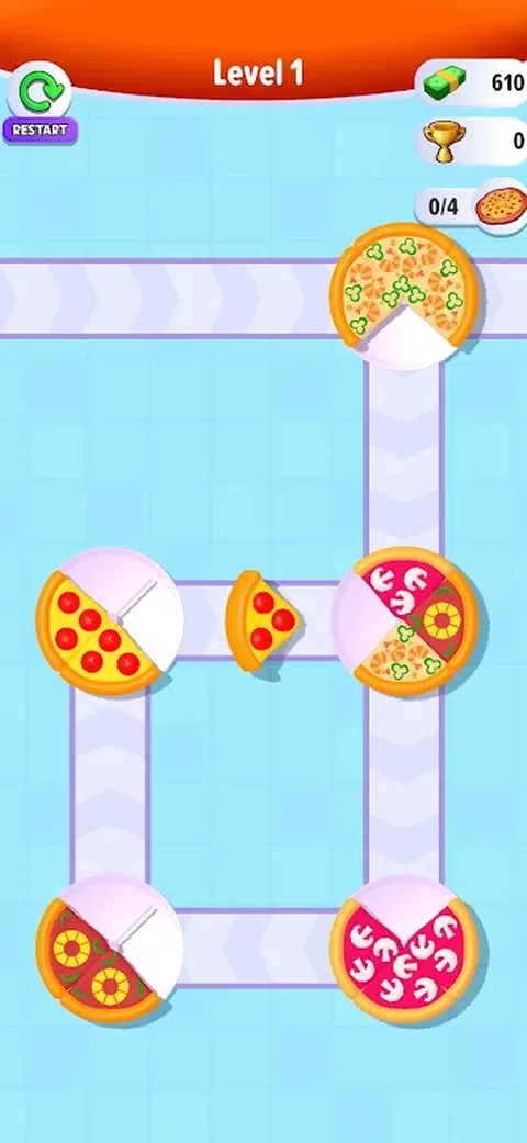 一个有趣且发人深省的益智游戏正等着您在紧张的一天之后放松并训练您的大脑! 将披萨片带到任何您想要的地方,然后将它们转移到盘子上将其组合。 每个完成的披萨都会为您带来利润,并提供具有全新级别的令人兴奋的拼图。 不要被美味的切片分散注意力,并使用最佳策略来完成拼图