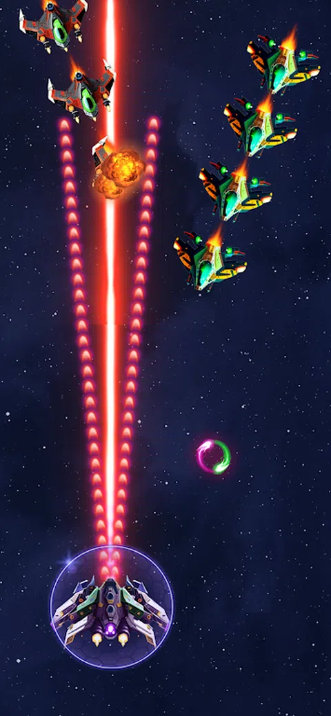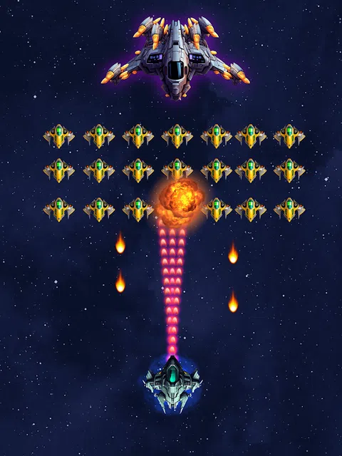准备好在《太空入侵者:外星射手》中点燃天空!控制强大的航天器,在与一波波敌舰作战时释放其全部潜力。在快节奏、自上而下的射击动作中,你需要快速的反应能力和战略思维才能生存。升级你的飞船的武器和能力,在这个肾上腺素激增的射击游戏中,在激烈的混战中驾驭自己的方式。 Space Invaders: Alien Shooter 拥有令人眼花缭乱的图形和震撼的音乐,让你从头到尾都坐在座位的边缘 这是有关如何玩《太空入侵者:外星人射手》的简单说明: - 开始游戏:在移动设备上启动,点击开始按钮开始游戏。 - 控制你的飞船:用你的拇指或手指来控制你的飞船的运动。向左或向右移动船,以避免来袭的敌人火力。 - 射击敌人:持续射击,直到敌人被摧毁。 - 收集增强道具:在游戏过程中,您会遇到可以升级武器或暂时无敌的增强道具。用你的船飞入这些增强器来收集这些增强器。 - 逐步推进:在各个关卡中开拓前进,每个关卡都有越来越具有挑战性的敌人和障碍。 - 击败首领:在每个级别结束时,您将面对一个强大的首领。使用所有技能和武器击败它并进入下一个级别。 - 重复并享受:继续玩,看看你能在 Galaxy Shooter 中走多远。玩得开心,享受旅程