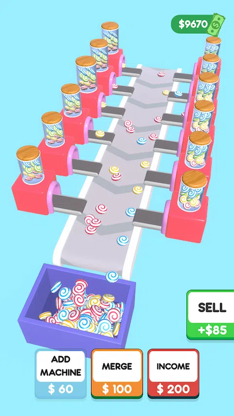 成为美味糖果工厂的老板。 用糖果填充您的盒子并合并糖果机